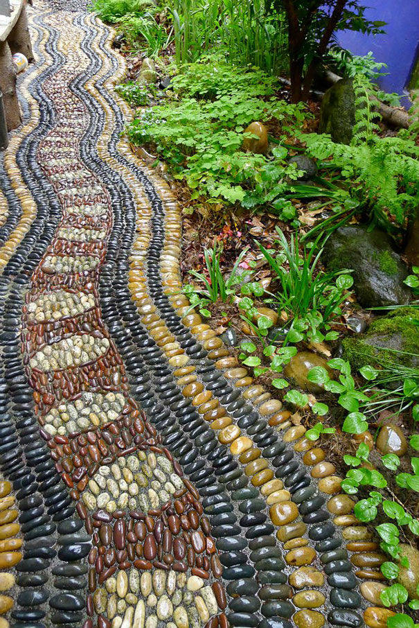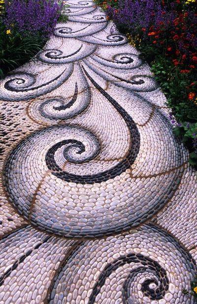 庭院常常是最能体现房子主人个性的地方。如果能够用鹅卵石打造一条漂亮的花园小径的话,何乐而不为呢?经过精心的排列之后它们仿若是艺术品般精致有趣。